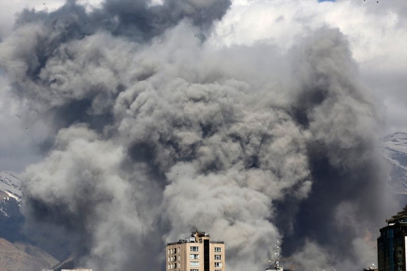 Saldırılar Tahran’ın kuzey ve doğu kesimlerine gerçekleştirilirken, vurulan noktalardan dumanlar yükseldi.