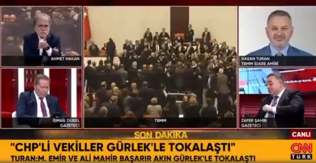 CHP milletvekillerinin kürsüye yönelmesiyle başlayan tartışma kısa sürede büyüyerek yumruklu kavgaya dönüştü.
