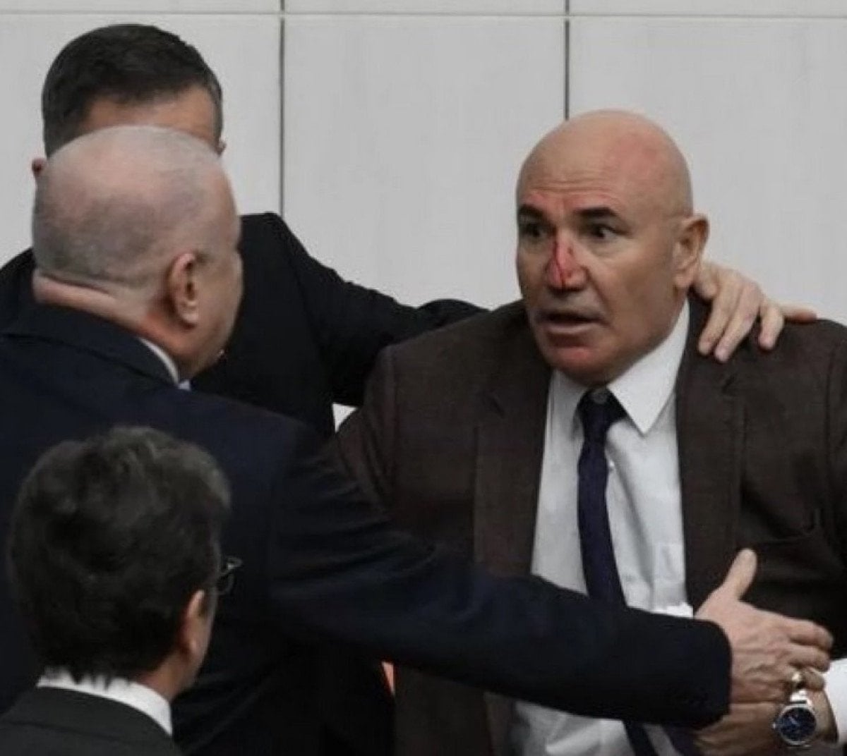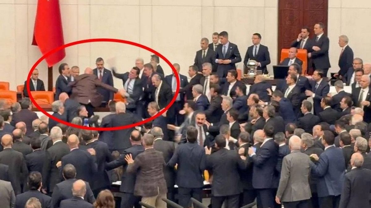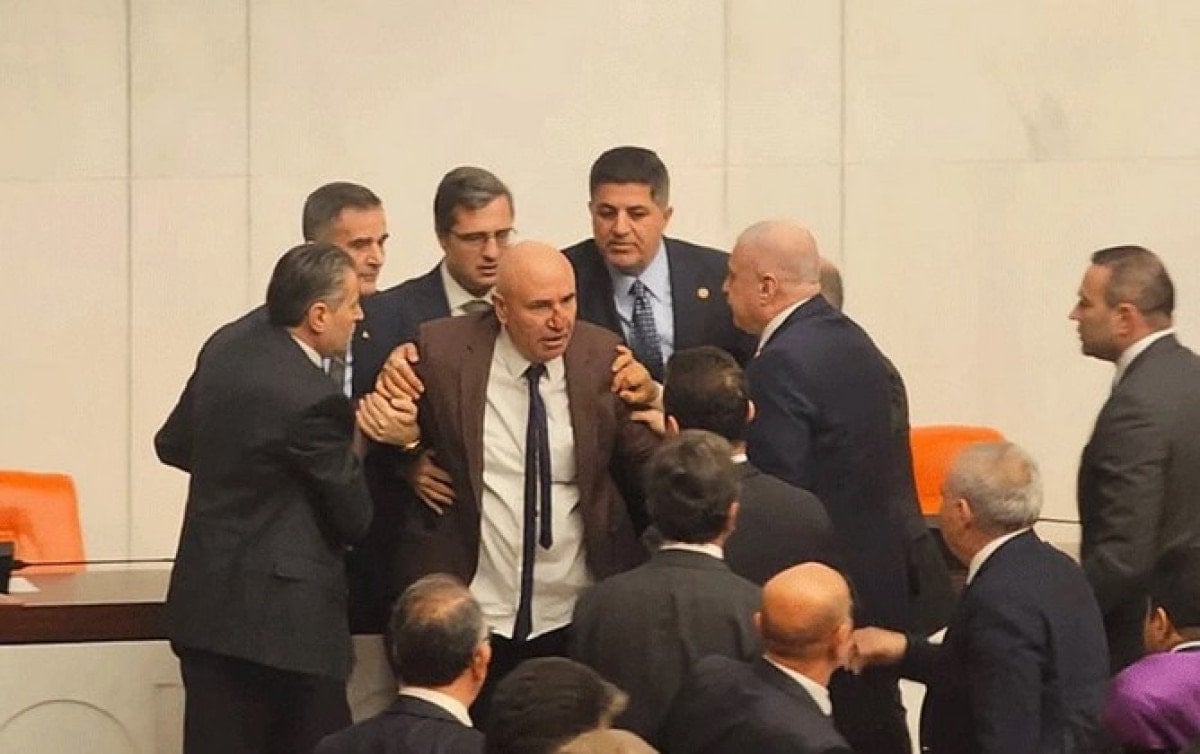 Tansiyonun yükselmesiyle milletvekillerinin birbirini ittiği, bazı vekillerin ise yumruk savurduğu görüldü.