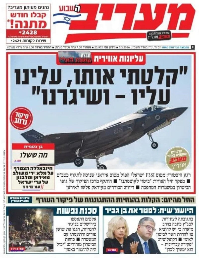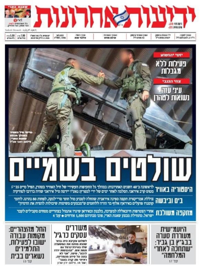 Çağlar, bugün ayrıca gazeteler ne yazmış, bunlara baktım. İsrail’de yayın yapan en çok okunan 3 gazeteye baktım özellikle. Yedioth Ahronoth gazetesi ‘İsrail hava sahasında tarihi an’ demiş, 40 yıl sonra bir ilk, F-35 Tahran’da İran uçağını düşürdü diyorlar.