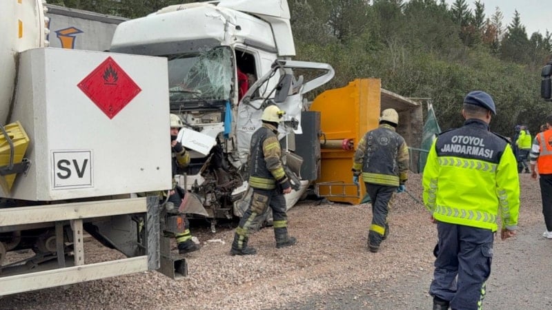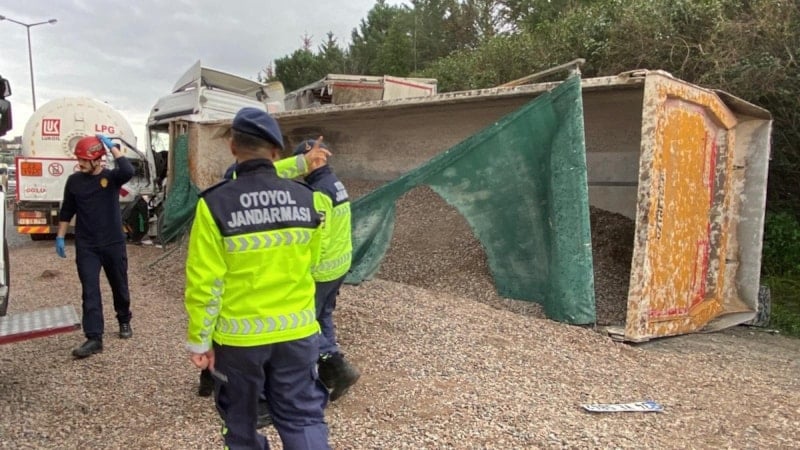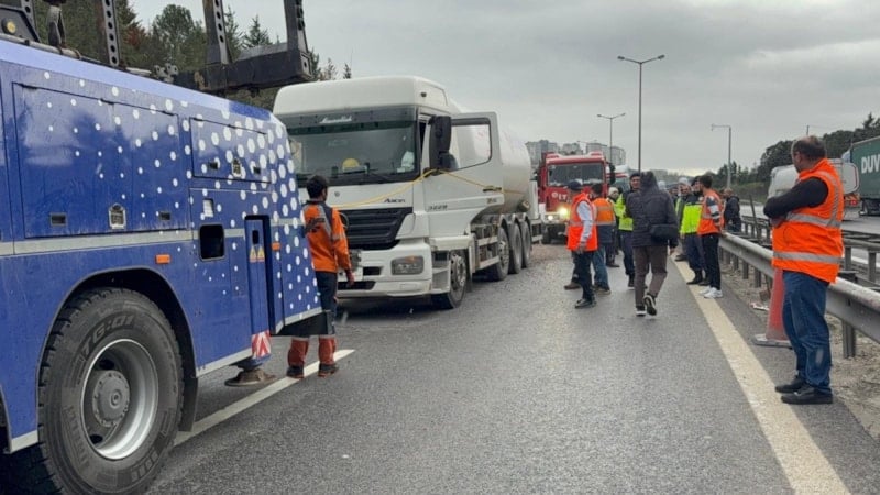 Kazaya LPG tankeri, biri mıcır yüklü olmak üzere iki tır ve otomobilin karıştığı belirtildi.