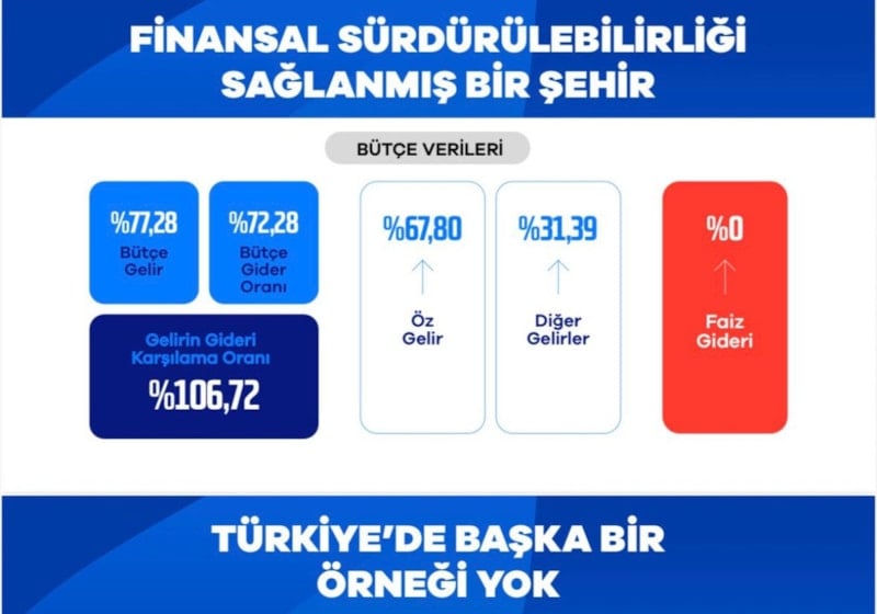 Sunumda; faizsiz belediyecilik, geliri giderden fazla bütçe, öz kaynak gelirlerinin yüksekliği, ihalelerin şeffaflığı, kentsel dönüşüm ve vatandaş memnuniyeti ön plana çıktı.