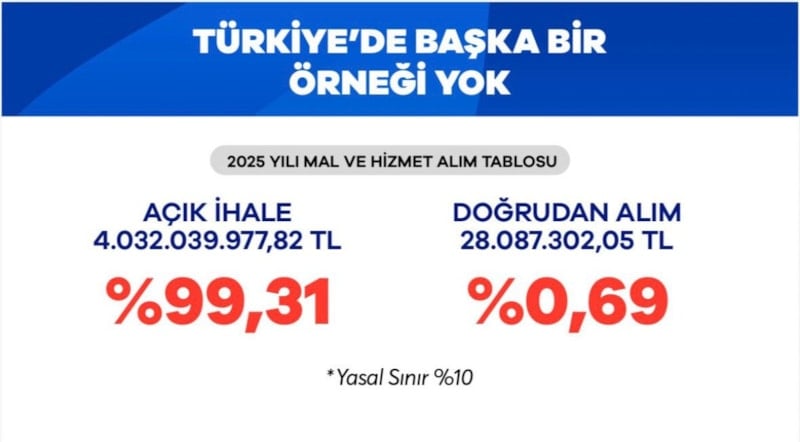 Şeffaflık konusunda da dikkat çeken Başkan Tevfik Göksu, Esenler Belediyesi tarafından gerçekleştirilen ihalelerin yüzde 99,3’ünün açık ihale yöntemiyle yapıldığını, yalnızca yüzde 0,7’sinin doğrudan temin yoluyla gerçekleştirildiğini ifade etti. Başkan Göksu Belediye kanununda yer alan yüzde 10’luk doğrudan temin sınırına yaklaşılmadığını belirterek bu tablonun hesap verebilir ve şeffaf yönetim anlayışının bir sonucu olduğunu vurguladı.