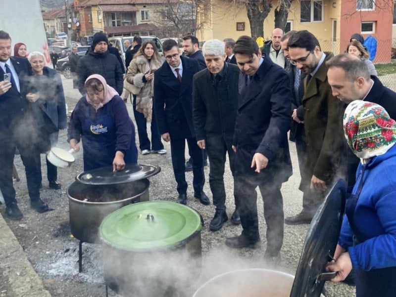 Köyde soydaşlar tarafından hazırlanan geleneksel yemekler kendi kültürlerine uygun olarak servis edildi.