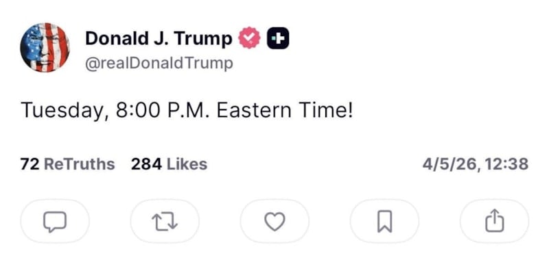 ABD Başkanı paylaşımında herhangi bir ayrıntı vermeksizin “Salı, Doğu Saati ile akşam 08:00!” ifadesini kullandı.
