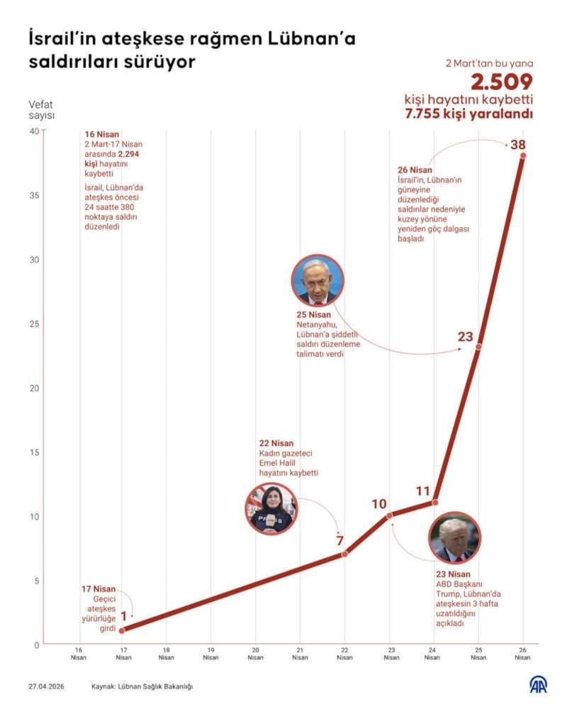 ABD Başkanı Donald Trump, Lübnan ile İsrail arasında 17 Nisan’da yürürlüğe giren 10 günlük geçici ateşkesin 3 hafta daha uzatıldığını duyurdu.