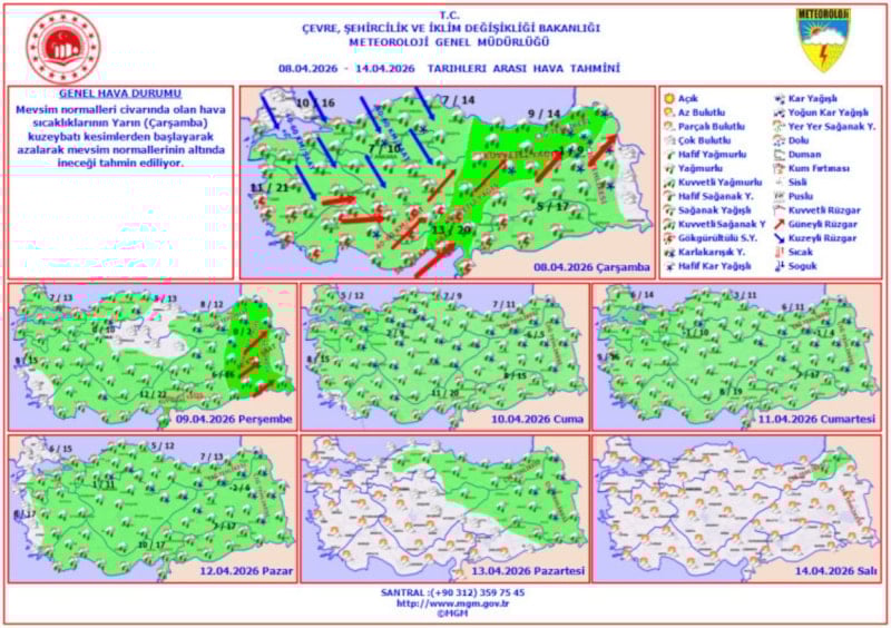 13 Nisan Pazartesi ve 14 Nisan Salı gününden itibaren ise yağışların yurdu terk edeceği, sıcaklıkların tekrar yükseliş trendine gireceği ve güneşli günlerin geri döneceği tahmin ediliyor.
