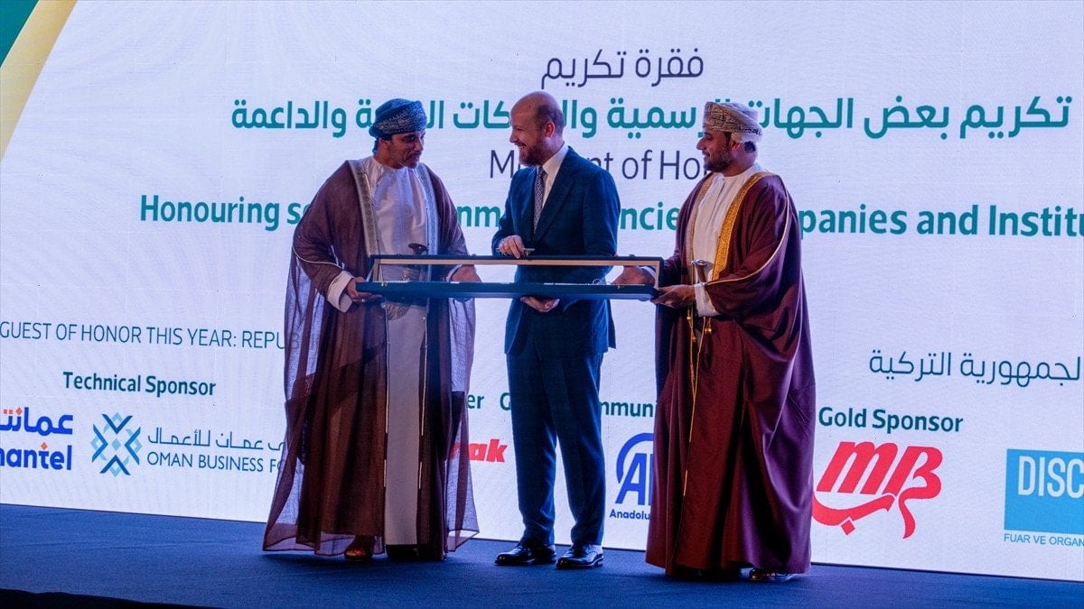 Öte yandan, törende Büyükelçi Faisal bin Turki bin Mahmoud AL Said, İlim Yayma Vakfı Mütevelli Heyeti Başkanı Bilal Erdoğan’a kılıç hediye etti ve Ticaret Bakan Yardımcısı Uçarmak’a da teşekkür plaketi verdi. OMNEX 2026 Umman-Türkiye İş Forumu ve Uluslararası Ticaret Fuarı’nın global iletişim ortağı olan Anadolu Ajansı adına teşekkür plaketini ise Faisal bin Turki bin Mahmoud AL Said’in elinden Ekonomi Haberleri Muhabiri Serhat Tutak aldı.