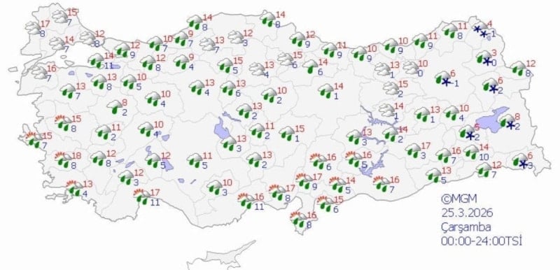 Macit, genellikle sağanak şeklinde olacak yağışların Doğu Anadolu’nun doğusunda ve Doğu Karadeniz’in yüksek kesimlerinde karla karışık yağmur ve kar şeklinde olacağını bildirdi.