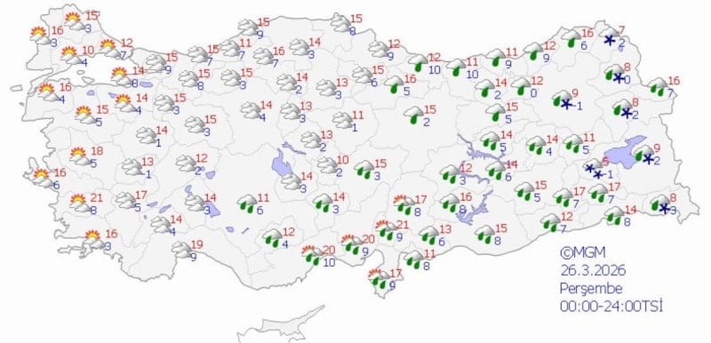 Yurdun bazı bölgelerinde kar yağışı da görülecek.