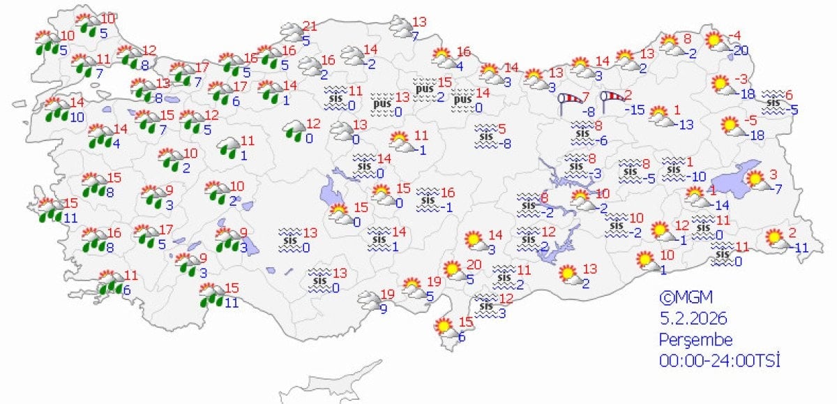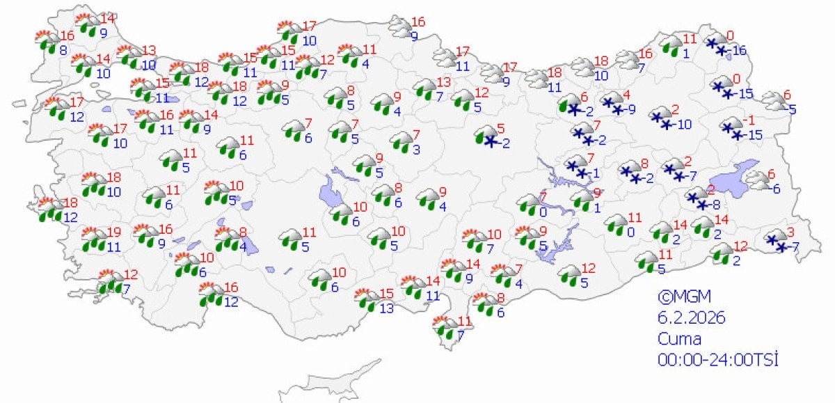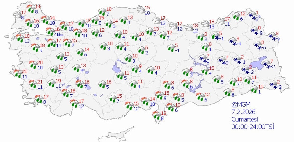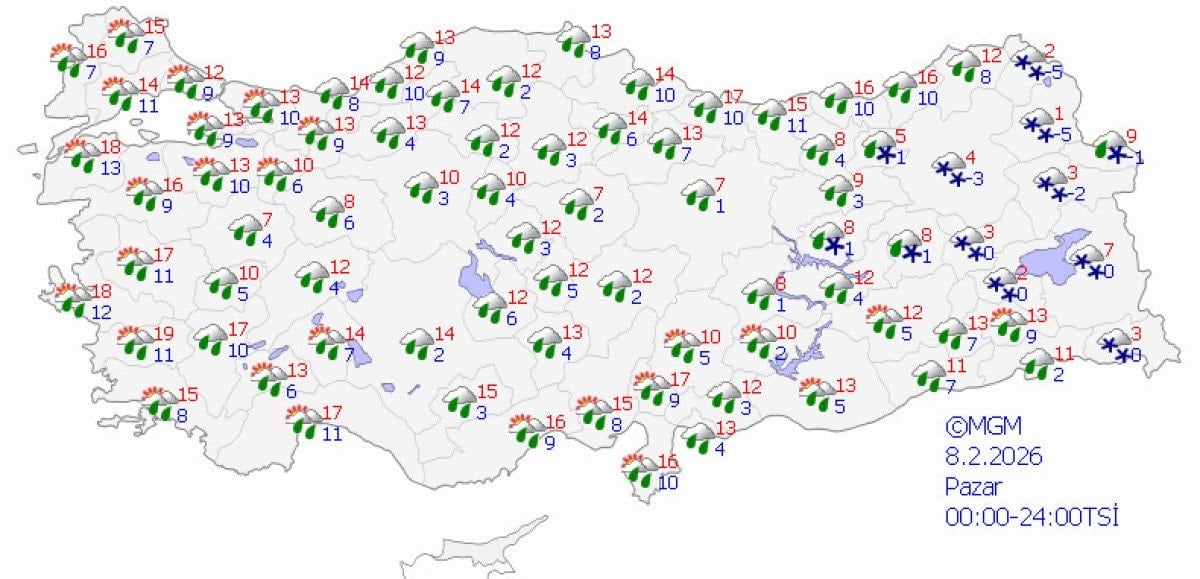 Sıcaklıkların batıda 10-20 derece civarlarında, doğuda ise sıfır ve altında değerlerin görüleceği tahmin ediliyor.