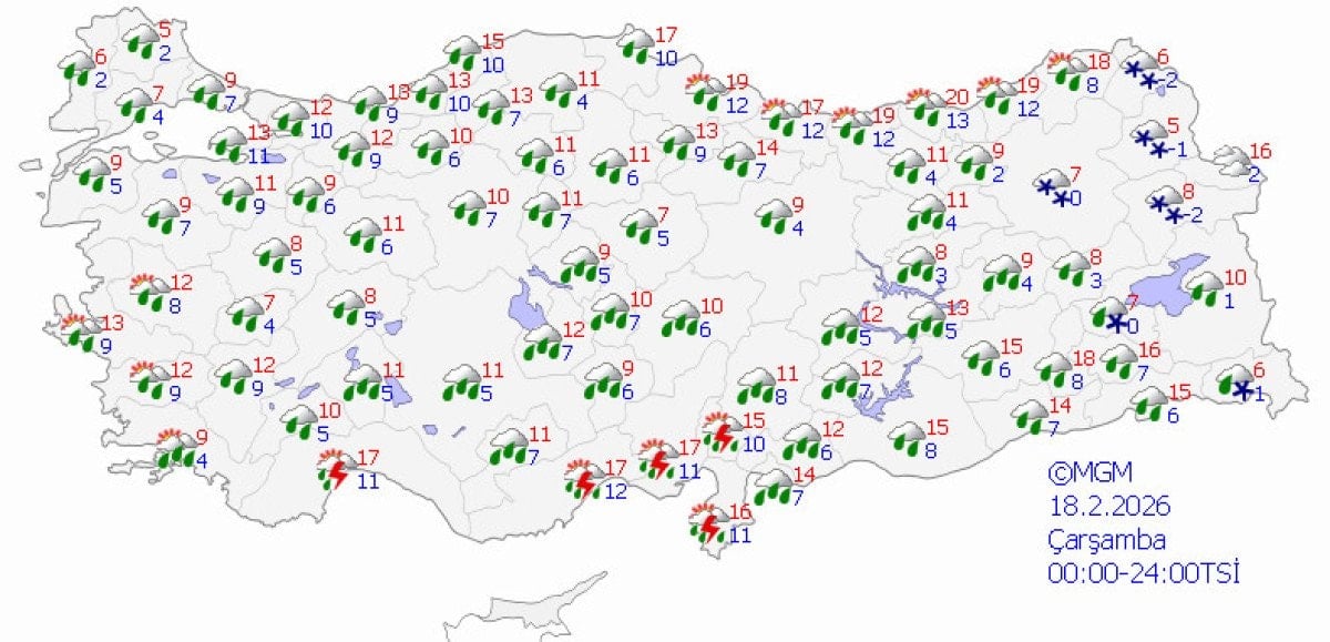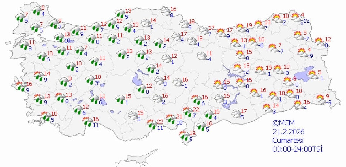 Özellikle 19-22 Şubat arasında iç ve doğu kesimlerde buzlanma ve don olayına karşı dikkatli olunmalı.