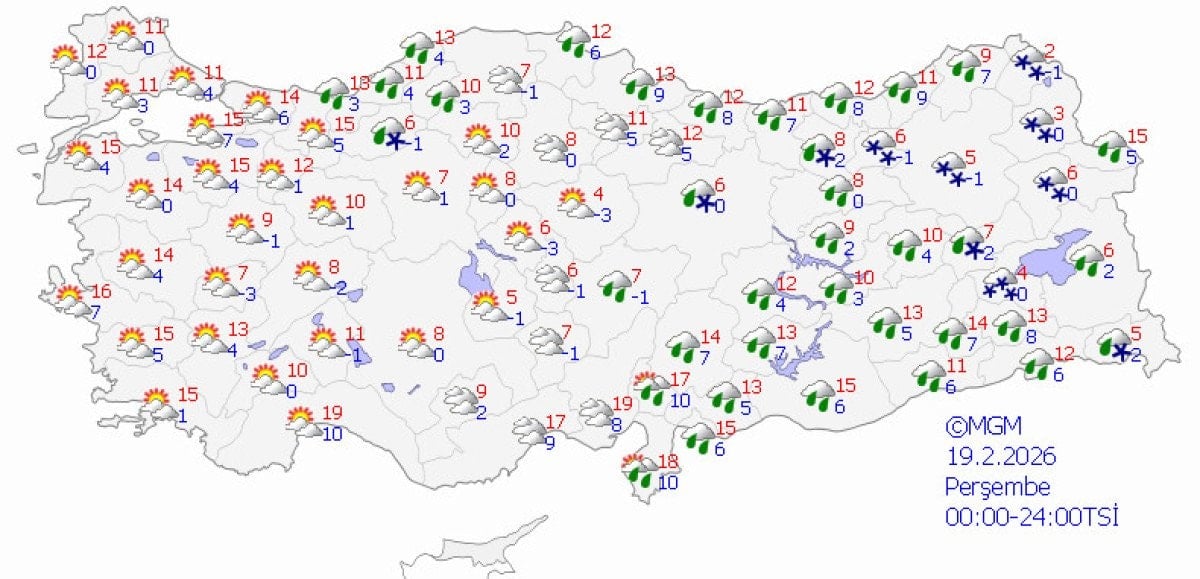 Bugün ülkenin batı ve kuzey kesimlerinde nispeten daha ılıman, doğu ve iç kesimlerde ise soğuk hava hakim olacak.