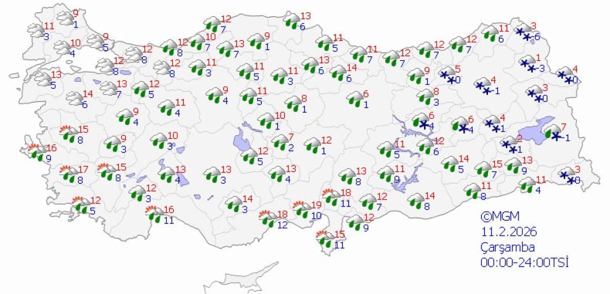 Sıcaklıkların benzer seviyelerde; doğuda daha soğuk ve 0-11, batıda ılıman ve 8-18 derece civarında seyredeceği öngörülüyor.