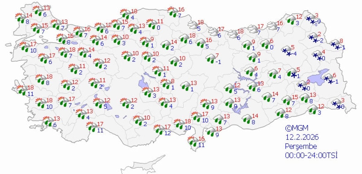 Sıcaklıklar kıyı kesimlerde 10-18, iç ve doğu bölgelerde 5-13 derece civarında seyrederken, yüksek rakımlarda daha düşük değerler kaydedilecek.