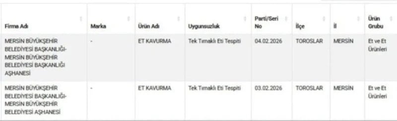 Mersin’de bir aşevinde dağıtılan kavurma yemeğinde tek tırnaklı hayvan eti tespit edildi.