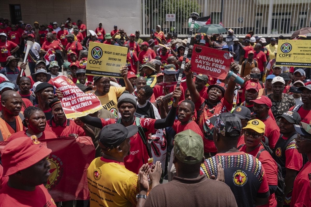 Venezuela’nın başkenti Caracas’taki tarihi Bolivar Meydanı’nda (Plaza Bolivar de Caracas) toplanan Venezuelalılar, ABD’yi protesto ederken, diğer yandan Maduro’nun serbest bırakılması ve ülkeye dönmesi için topluca dua etti.