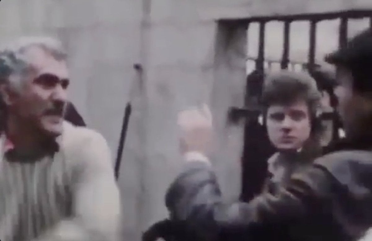 Fransa’da çekilen ‘Duvar’ filminin setine ait olduğu iddia edilen görüntülerde, Yılmaz Güney’in performansını beğenmediği genç oyuncuya saldırdığı anlar yer alıyor.